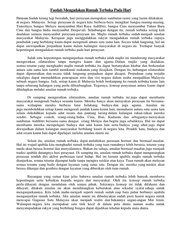 Doc Karangan Cemerlang Spm Kebaikan Amalan Rumah Terbuka Najat Ruhi Academia Edu
